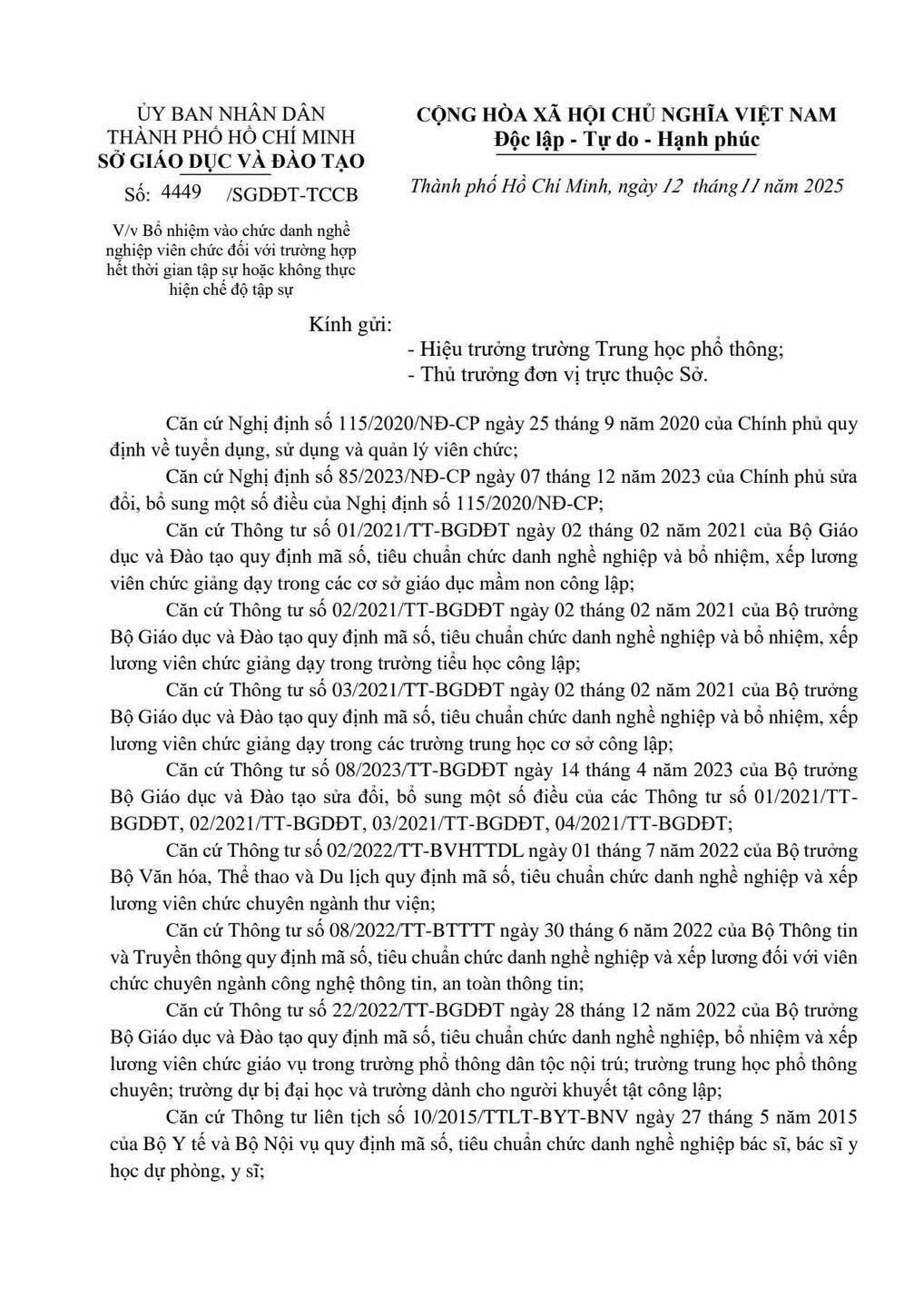 VB 4449/SGDĐT BỔ NHIÊM VÀO CHỨC DANH NGHỀ NGHIỆP VIÊN CHỨC